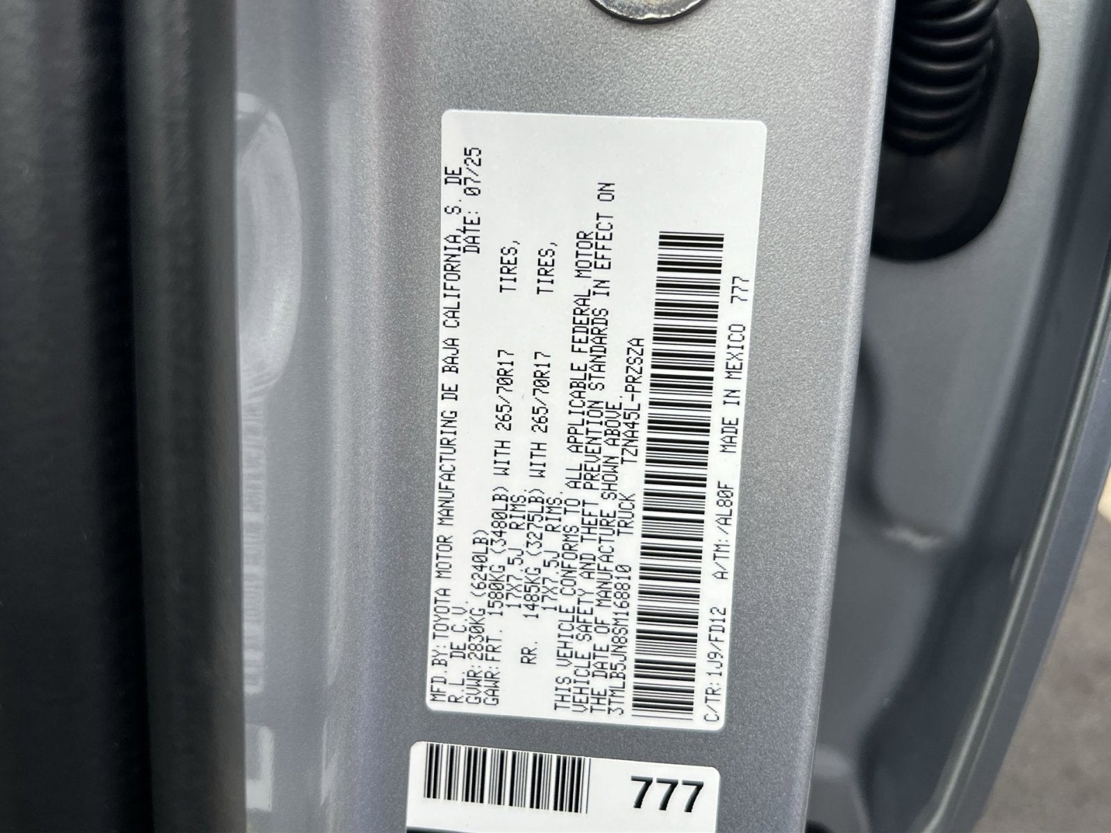 - Vehicle Name: Toyota Tacoma 4WD