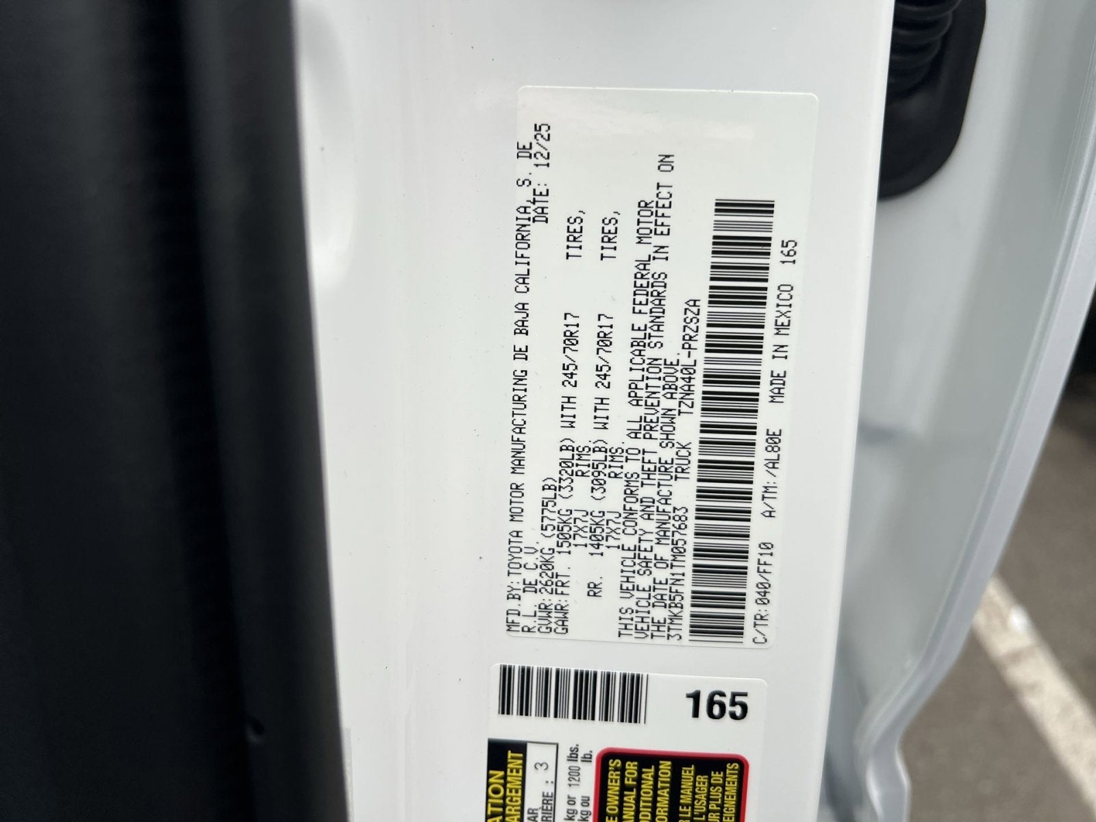 - Vehicle Name: Toyota Tacoma 2WD