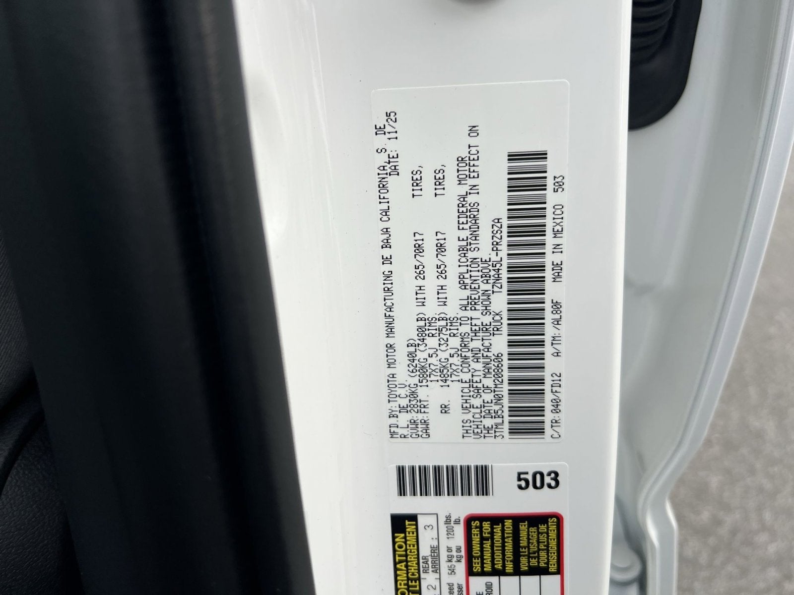 - Vehicle Name: Toyota Tacoma 4WD